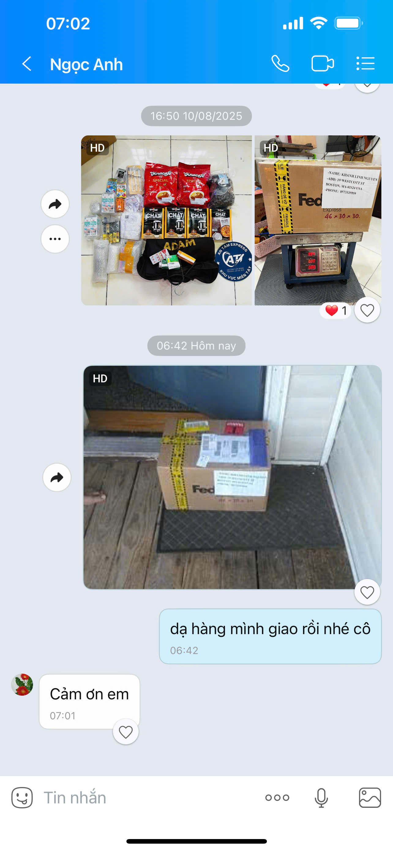 "Lần đầu gửi khô cá lóc đi Mỹ cho con gái, sợ bị hải quan giữ lại mà An Tâm Express lo thủ tục FDA trọn gói. 4 ngày là con mình nhận được rồi. Rất uy tín!"