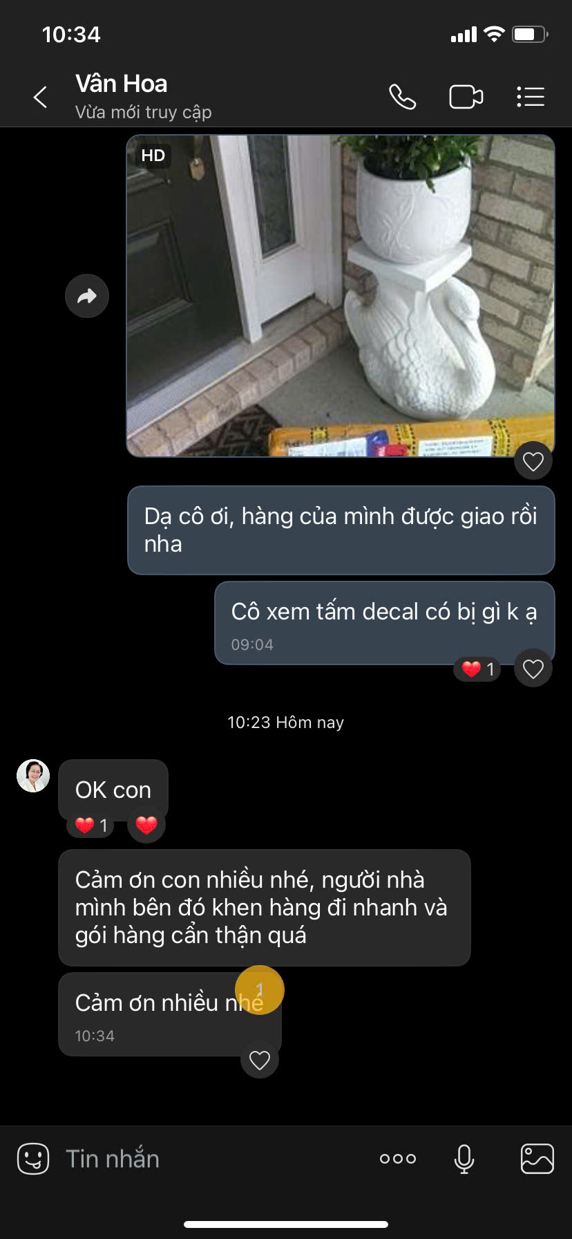 "Gửi thuốc tây với yến sào đi Canada khó lắm mà bên này làm được. Tư vấn nhiệt tình, tracking theo dõi dễ hiểu. Sẽ ủng hộ dài dài."